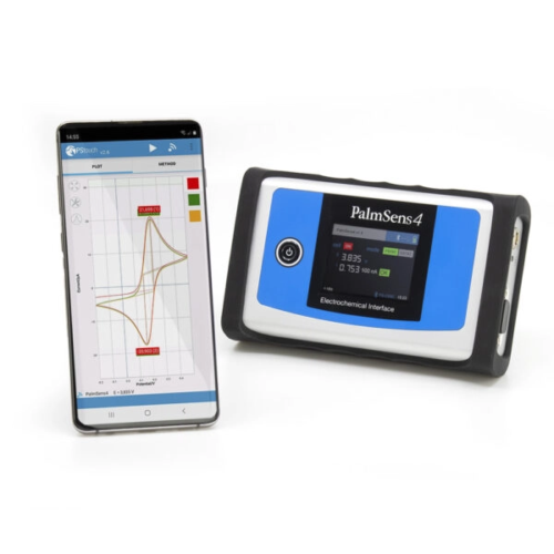 Công cụ hàng đầu của chúng tôi, PalmSens4, là một Potentiostat, Galvanostat chạy bằng pin và USB và tùy chọn là Máy phân tích đáp ứng tần số (FRA) cho Quang phổ trở kháng điện hóa (EIS). PalmSens4 có dải điện thế lớn (-5V đến 5V hoặc -10V đến 10V) và dải dòng điện (100 pA đến 10 mA) với độ phân giải cao và độ nhiễu thấp. PalmSens4 là một công cụ phòng thí nghiệm hoàn chỉnh nhưng thiết kế nhỏ gọn và chắc chắn khiến nó trở nên lý tưởng cho công việc thực địa. Kết nối qua Bluetooth đảm bảo phép đo hoàn hảo từ hãng Palmsens.